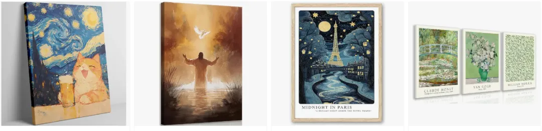 1)装饰画、浴帘、抱枕等家居品类
