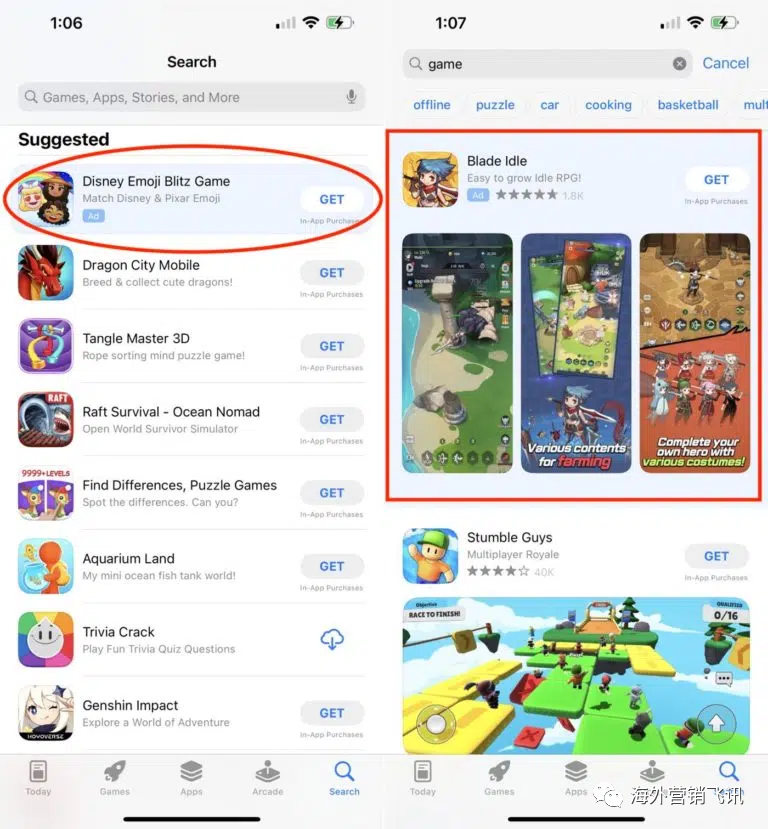 Apple 广告的发展方向。展示广告显示在搜索标签中。但据彭博社报道,很快苹果将把广告扩展到今日主标签以及第三方应用程序下载页面。对于应用商店中的搜索广告,当用户搜索与应用相关的字词时,开发者可以付费让他们的应用出现在结果中。