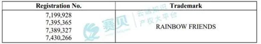 原告为“Rainbow Friends”注册了多个文字商标,涵盖多个商标类别。