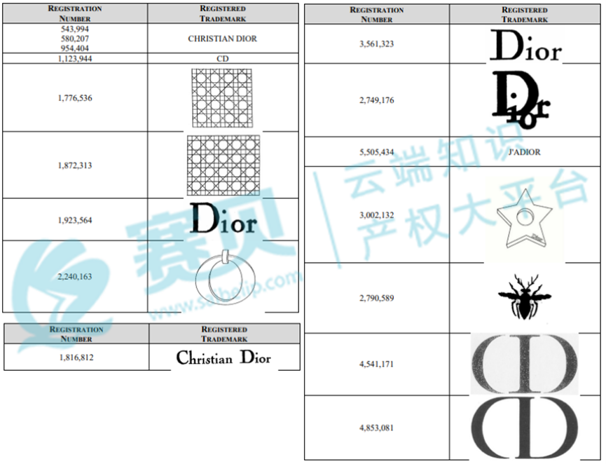 Christian Dior,简称Dior或CD,案件涉及的商标大多是消费者熟识的迪奥标识,比如CD、Dior、CHRISTIAN DIOR等。