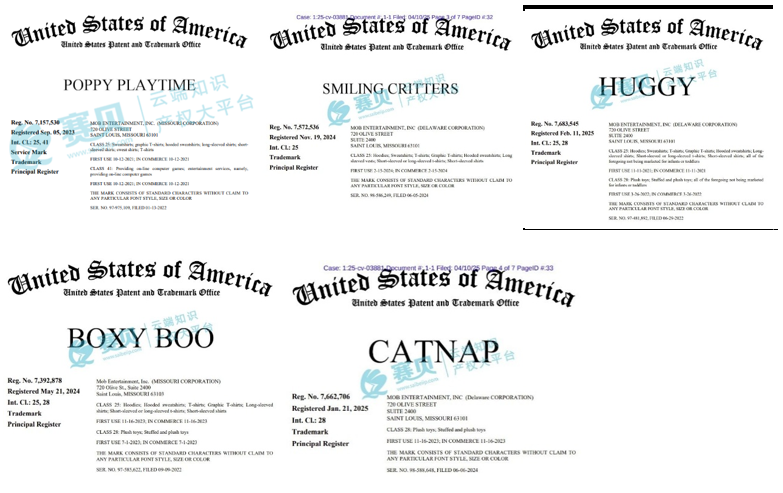 原告Mob Entertainment,Inc.多次发起的是商标和版权维权,以下是历史案件中出现过的商标和版权,跨境电商卖家朋友们切勿使用,以免涉嫌侵权被GBC律所取证。