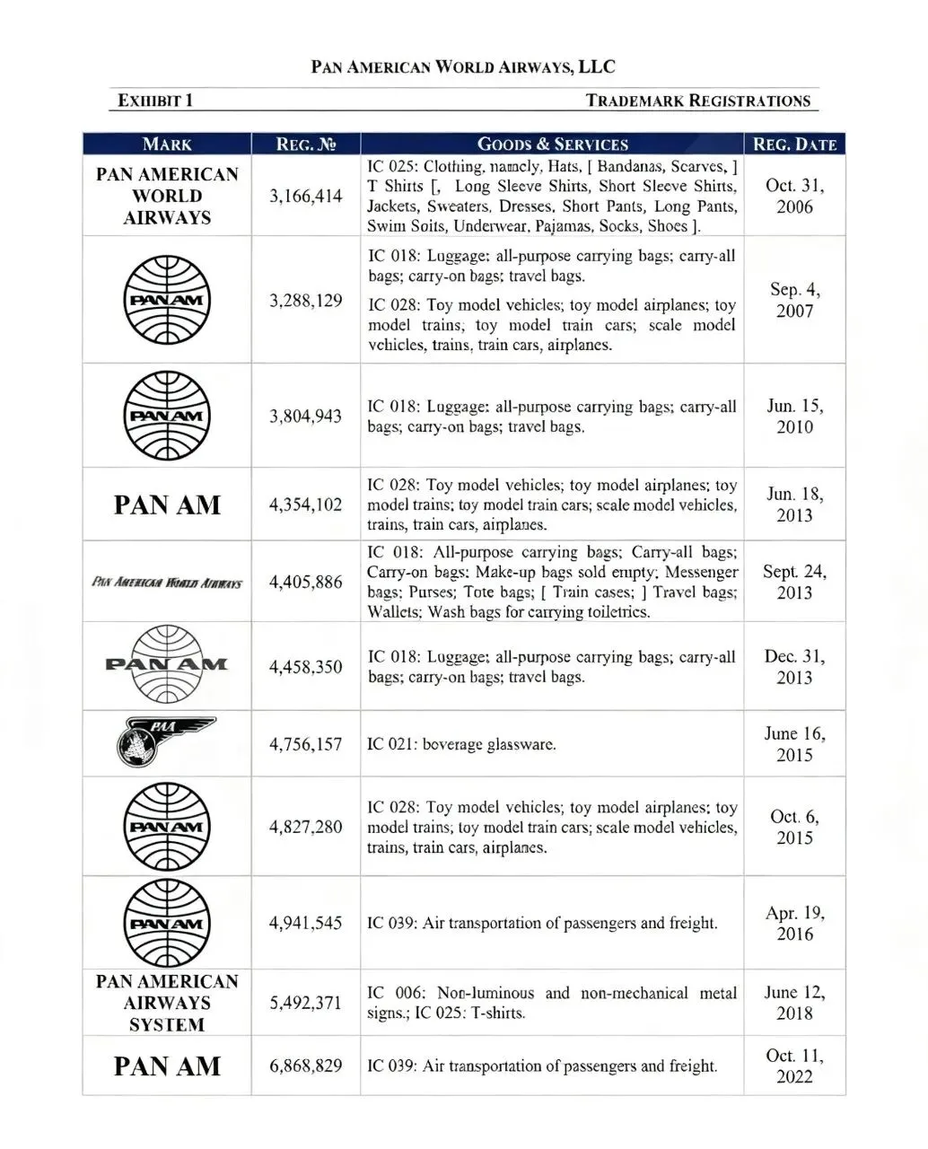 原告Pan American World Airways, LLC成立于1927年,是美国一家极具影响力的国际航空公司,被誉为20世纪的文化象征,以其蓝色地球标志和Clipper飞机命名而闻名,开创了众多航空业的先河。