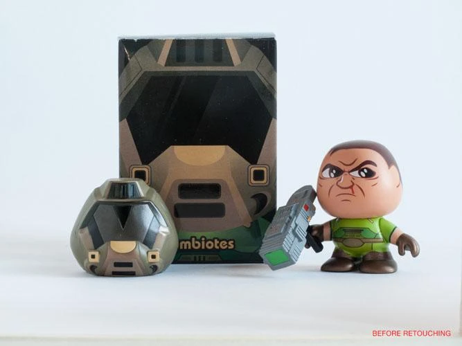 将产品放在幕布平坦部分的中央,并留出足够的空间以供稍后摆放白色反光板。在这个示例中,我们的产品是 Symbiote Studios提供的一款很酷的 Skyrim&Doom 玩具。感谢他们的支持!