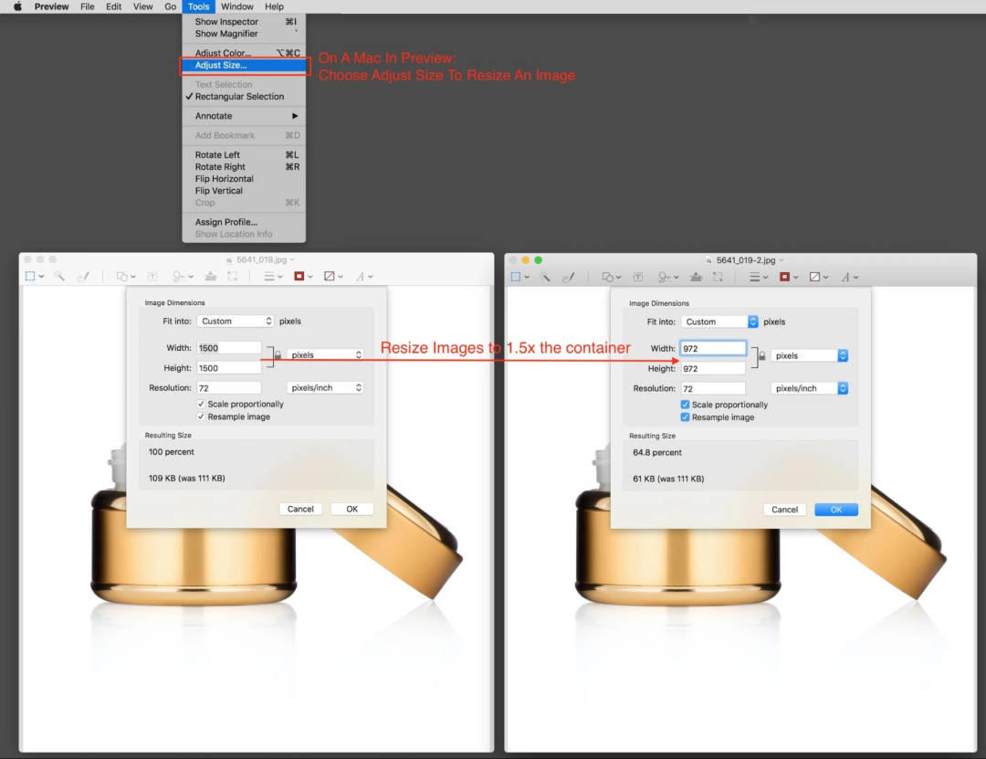 在将图片上传到网站之前,你需要调整实际图像的大小以适合容器。我通常会调整图片大小,使其比容器大1.5倍,因此在视网膜屏幕上看起来效果很好。在本示例中,这是一个 972px 的正方形。