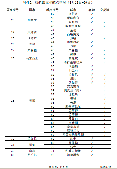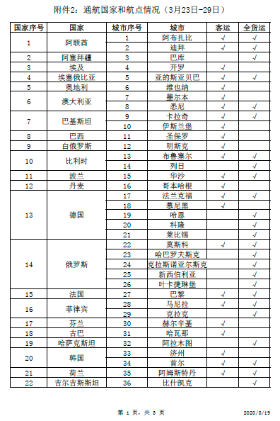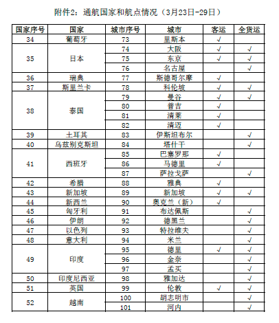 附件1:中外航空公司国际航班计划(3月23日-29日)