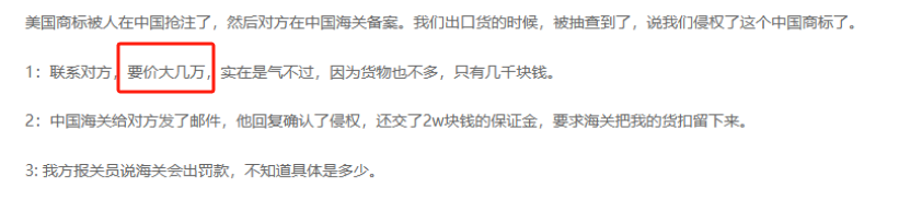 据麦麦了解,不少卖家的美国商标不仅在中国被恶意抢注,更为甚者,直接张口勒索几十万!对方还顺势在中国的海关总署进行了商标备案,直接导致卖家出口货物被稽查扣留影响货物出口!