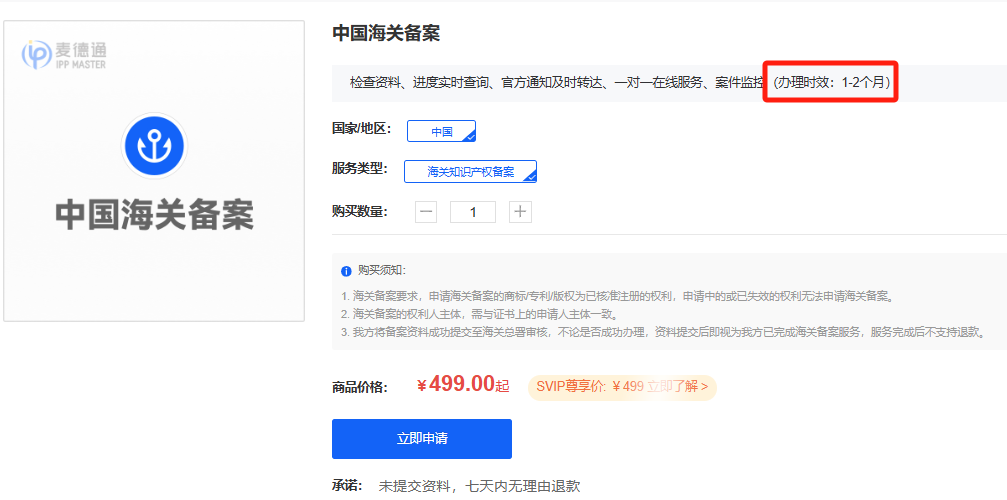 海关备案办理周期一般为1-2个月左右,海关备案成功后,麦德通将成功备案信息上传至麦德通系统,用户可在工作台进行查询。