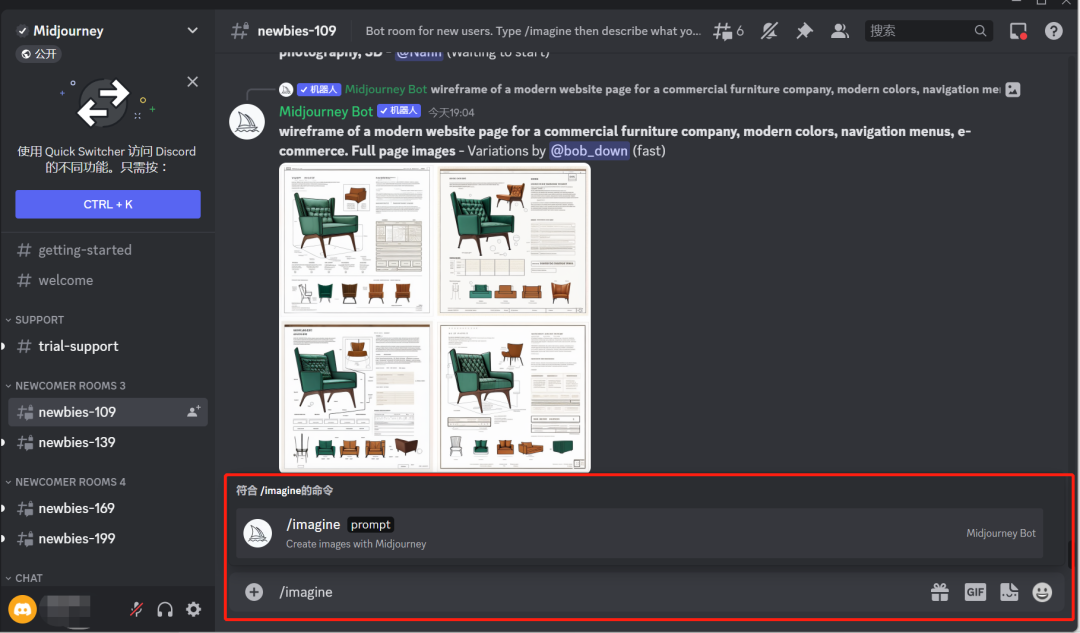 在This Person Does Not Exist自动产生头像图片,不满意图片点击Refresh更新。网站:https://this-person-does-not-exist.com/en利用同样的思路,逐一完善Home、Product、About、Contact、Blog页面https://www.midjourney.com/Midjourney 是一种图片搜索引擎,可以通过输入关键词来搜索与该关键词相关的图片。它可以帮助用户快速找到符合需求的高质量图片,解决了头铁小谭在建站过程中遇到的图片选择难题。Note: 此段文字为Notion AI自动产生的文案,看到Call Back头铁小谭,的确有点绷不住。点击Join the Beta即可跳转到Discord的Midjourney服务器,点击之前需要提前注册好Discord账户。Discord是一种即时通讯软件,最初是为游戏社区设计的,但现在已成为各种社区的流行选择。用户可以创建自己的服务器,以便与其他人进行语音和文本通信,同时还可以共享文件和媒体。(Notion AI生成文案)在Discord官网:https://discord.com/上点击"注册",输入你的邮箱、用户名和密码进行注册即可。进入Midjourney服务器,点击左下角的NEWCOMER ROOM其中的任意一个房间号newbies-109,每个新用户会有25个免费额度。输入/imagine,点击/imagine prompt在/imagine prompt输入指令,如/imagine prompt a beautiful anime girl with a pink bow on head, 4k,即可产生以下图片可以选择。点击U1,U2,U3,U4可以Upscale优化其中某一张图片。点击V1,V2,V3,V4可以将某张图片进行变异Variation,从而产生一组同系列的风格图片。点击U1,图片效果会在上一步进行优化,不满意效果可以点击Beta Upscale Redo重新优化图片。