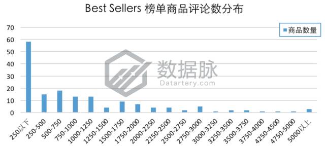 在上周登榜Toys & Games品类Best Sellers榜单的商品中,单个商品拥有的最大评论数为36960条,最小评论数为0条,平均评论数1498.3条,评论平均星级4.37星。在上榜商品中,有35.58%的商品评论数低于250条。此外,该周仅有3款商品的评论数在5000条以上,占上榜商品数的1.84%。骆探长(shujumai.com)发现,相比上期分析,评论数与评论星级只有微弱波动。