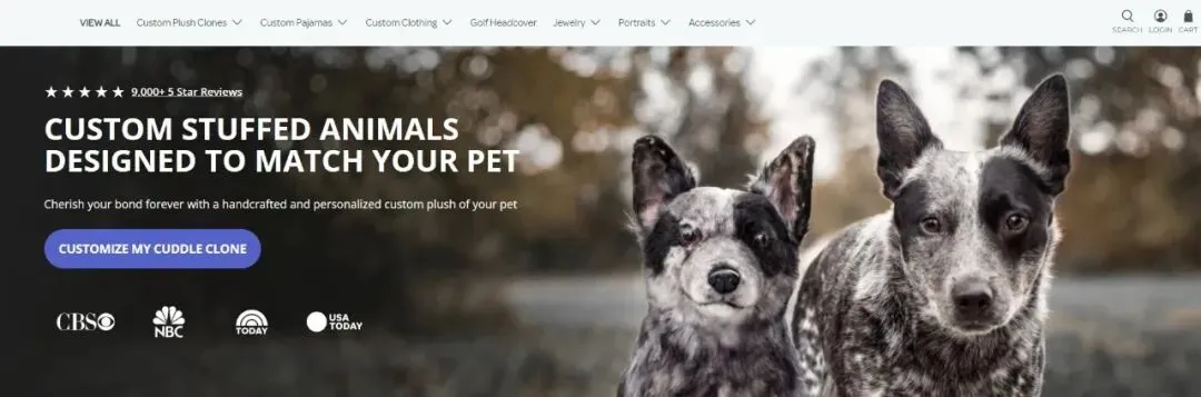 Cuddle Clones并未将“定制”局限在单一产品形态,而是围绕“宠物情感纪念”这一核心,延展出毛绒玩具、睡衣、首饰、肖像画等多个品类,并在核心产品中反复强调“手工打造”“捕捉宠物独特特征”等细节。