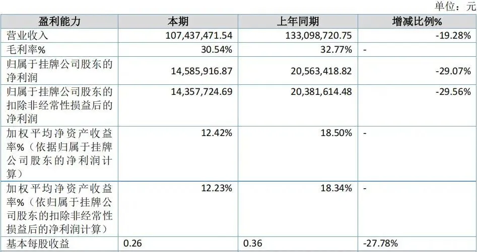 2025年上半年,尚洋科技营业收入为1.07亿元,同比下滑了19.28%;归属于挂牌公司股东的净利润则为1458.6万元,同比下滑29.07%
