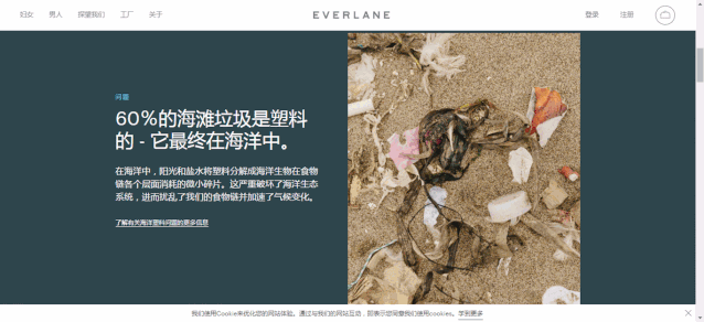 2018年-至今,Everlane已经和冲浪基金会合作清理了702个海滩,共有25,246位志愿者参与该活动,165,074桶塑料垃圾被清理。