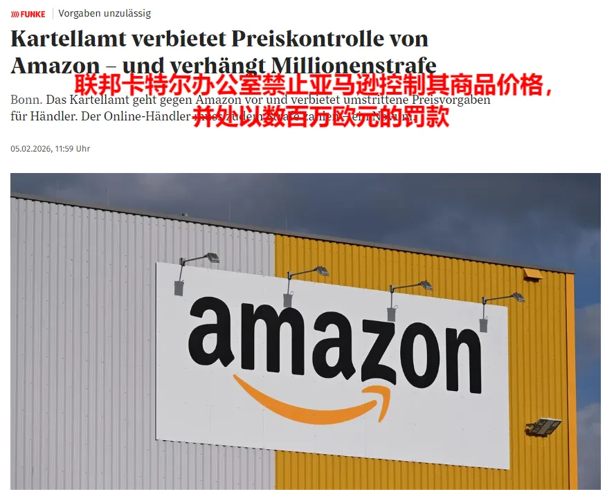 通报指出,亚马逊德国站占据该国在线零售额约60%,但平台一边运营自营业务,一边向第三方卖家开放市场,同时通过算法机制干预卖家定价。一旦系统判定卖家价格过高,轻则移出购买框,重则直接下架商品。