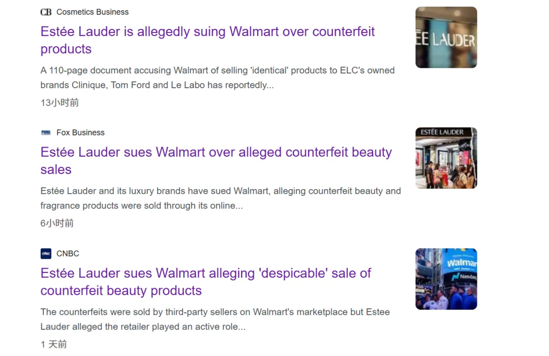几乎同一时期,沃尔玛在美国被雅诗兰黛一纸诉状告上法庭。