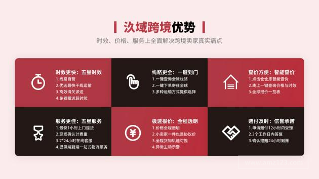 数字化进程必将跨境物流引入全新赛道,汣域跨境作为跨境物流领域数字化产业升级的引领者,运用互联网、区块链、大数据、云计算、仓储自动化、物联网等前沿技术打造了线上线下为一体的物流平台,连通产业上下游,围绕平台造就了跨境物流生态体系。汣域跨境秉承“五星时效,一键到门”的服务宗旨。为跨境电商卖家提供端到端、O2O(线上线下结合)一站式数字化的运收体验,为国货出海保驾护航,运送到门。