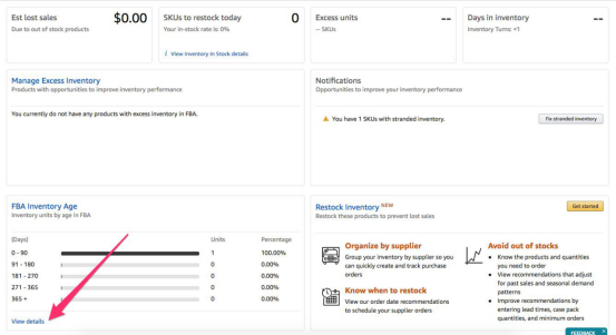 下拉页面直到“FBA Inventory Age”,点击“View Details”