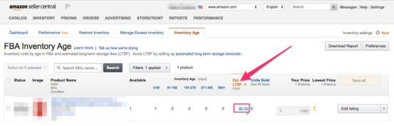 在这里,卖家可以看到预估的长期仓储费,以及库存时间。