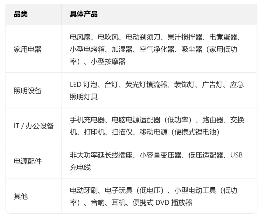 圆形 PSE 认证对应日本《电气用品安全法》中的非特定电气用品(B 类),共 341 种低风险产品,按 12 大品类划分,以下是核心品类与常见具体产品,完整清单需查阅日本经济产业省(METI)官方附录。
