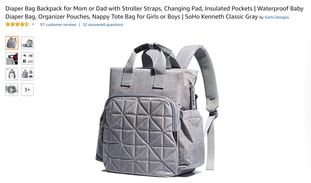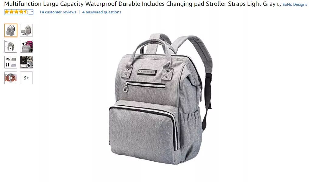 拥有美国外观设计专利的品牌为SOHO DESIGNS,SOHO DESIGNS LLP是美国经营妈妈包的厂商之一,其主要的销售渠道为亚马逊。