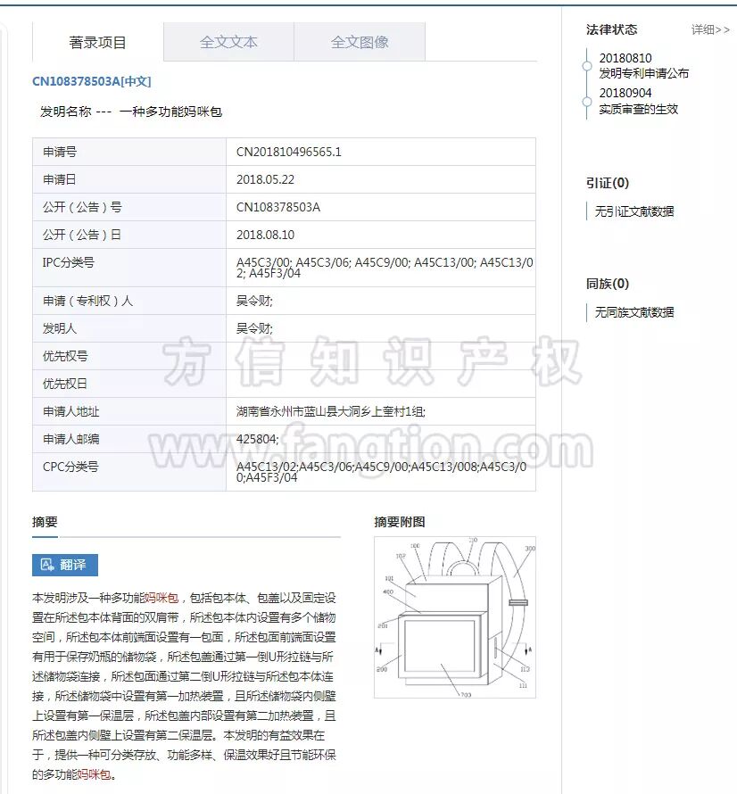 目前国内也有较多的关于妈咪包的实用新型专利,小编摘录其一 (见下图)。