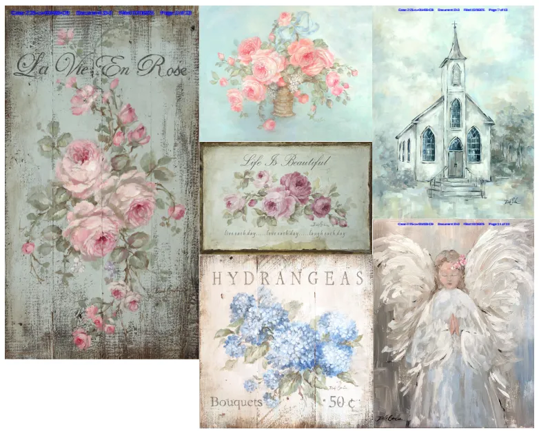 原告DEBRA COULES毕业于雪城大学的艺术家在艺术领域深耕多年。从时尚插画到儿童图书插画,从装饰绘画到纯艺术创作,她的艺术探索始终充满发现。除私人授课外,她还在私立学院和艺术中心任教。其作品发表于国内外12种杂志和书籍。她因钟爱柔和色调、动物绘画、花卉等题材,形成了独特的浪漫风格。其画作和版画遍布美国及海外家庭。黛布拉专精丙烯与水彩创作,但始终热衷于尝试新媒介与挑战。她通过艺术版画及授权产品的销售与分销获得可观收益。
