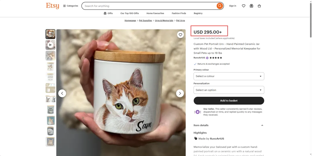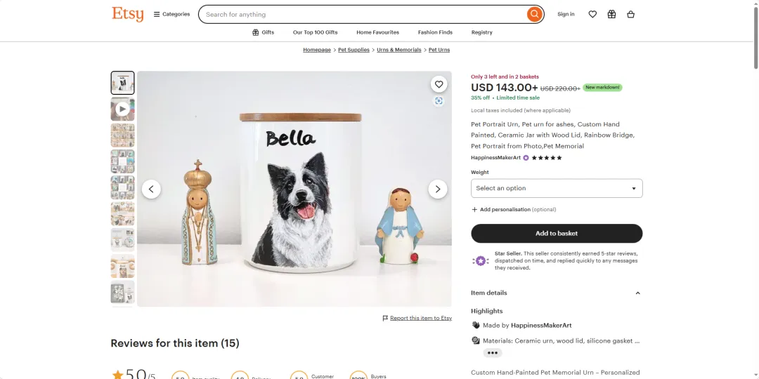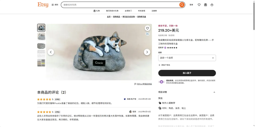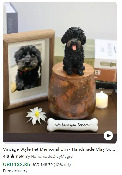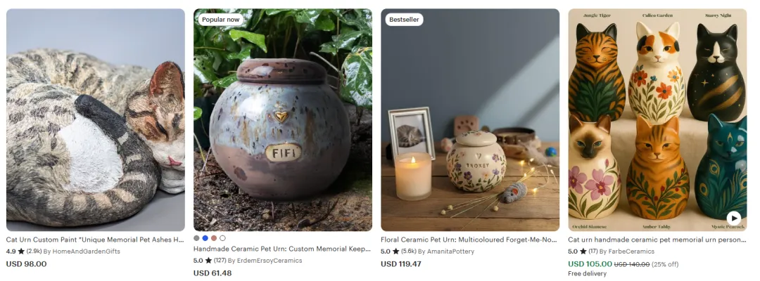 宠物骨灰盒的 “情感纪念 + 手工定制 + 材质安全” 属性与Etsy平台生态 100% 匹配,一些高净值客群愿意为 “宠物最后的尊严” 支付溢价。