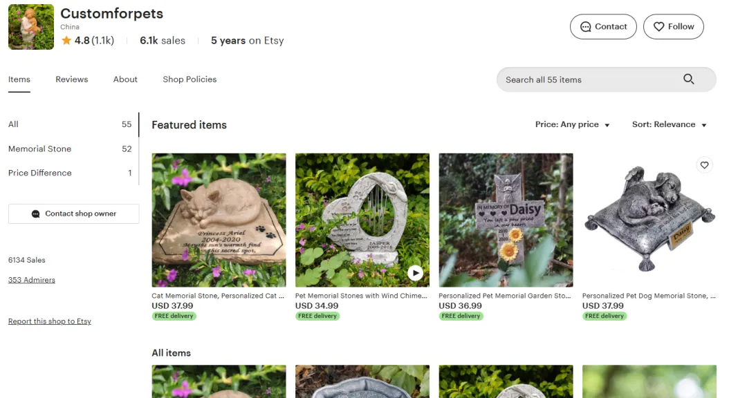 流量精准,转化率高:平台 9000 万活跃买家,核心需求就是 “原创、手工、有故事的商品”,宠物骨灰盒的情感属性天然契合搜索逻辑,无需大量投放即可获得自然流量(同类产品 Listing 平均曝光量是其他平台的 3.2 倍),关键词 “Custom Pet Urn” 年搜索量超 800 万次。