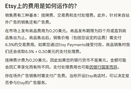 成本低,试错风险较小:在Etsy官方平台上有明确标注费用是如何运作的,详细看下图。