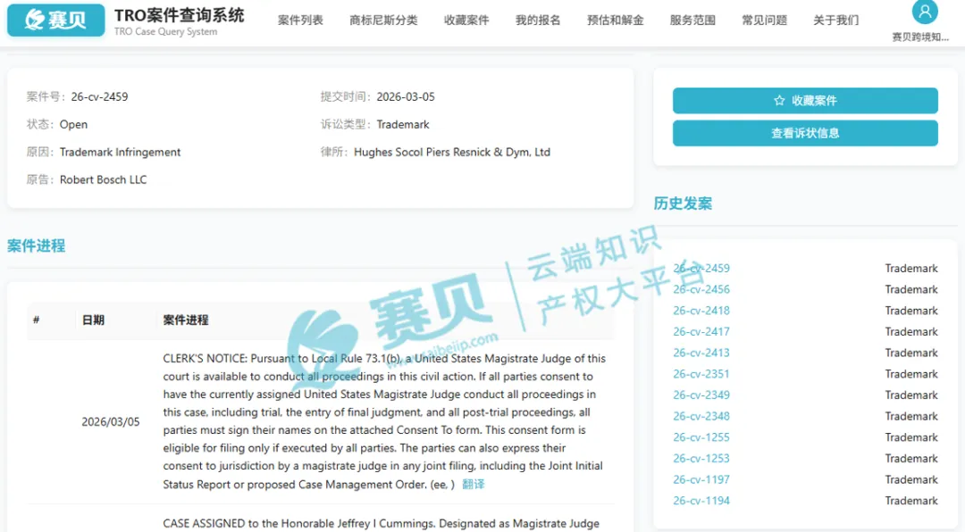 从赛贝TRO案件查询系统获悉,博世与2026年3月5日发起 HYDRO-BOOST 商标 TRO 维权,核心维权标的为 HYDRO-BOOST 制动系统商标,主要针对跨境电商售假行为,诉求禁令 + 最高 200 万美元法定赔偿,相关品类卖家速查合规!