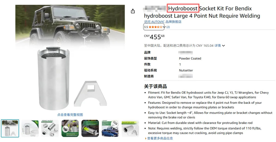 核定使用商品:陆地车辆液压助力制动系统(≤20000 磅),
