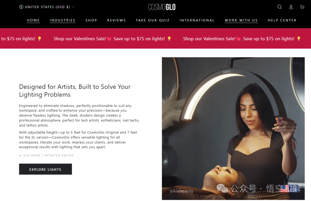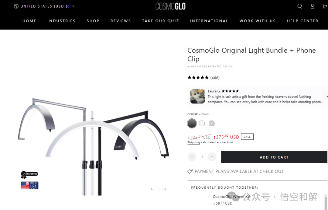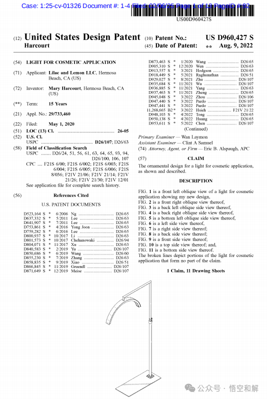 原告Cosmoglo, LLC是德克萨斯州的一家有限责任公司。本案维权的是一款曲面灯,采用独特的弧形设计,头可旋转360°,消除阴影和盲点,覆盖整个区域,非常适合精致工作。半月形灯头还支持折叠,以满足您的任何光线形状的需求,并充分发挥您的创造力。