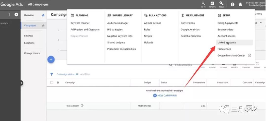 12)然后此邮箱绑定的谷歌广告账户会显示在下方,点击“Link”进行关联即可。