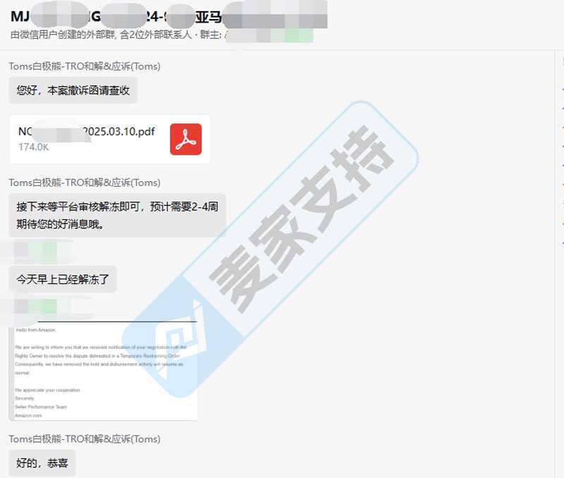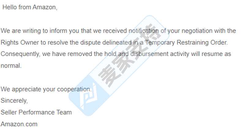 一卖家因专利侵权指控,其账户资金被冻结。经过几轮谈判,双方初步达成$2000的和解意向,然而原告却无故拖延,不提供协议,导致案件逼近缺席判决。面对这一情况,果断调整策略,通过法律途径争取到了部分店铺资金的释放,确保店铺正常运营不受影响,同时后续销售资金也能正常回款,有效缓解现金流压力。最终,在法律手段的压力下,原告不得不履行最初的和解协议。麦家支持鼓励卖家拿起法律武器积极维权,强调在面对专利侵权等不法指控时,应坚决捍卫合法权益。