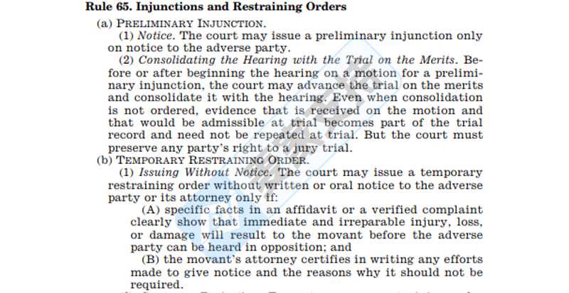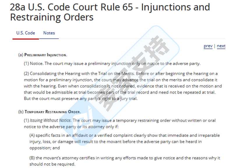 联邦民事诉讼规则的修订:《联邦民事诉讼规则》是美国事诉讼程序的基本法规。其中,规则65详细规定了TRO的颁发条件和程序。