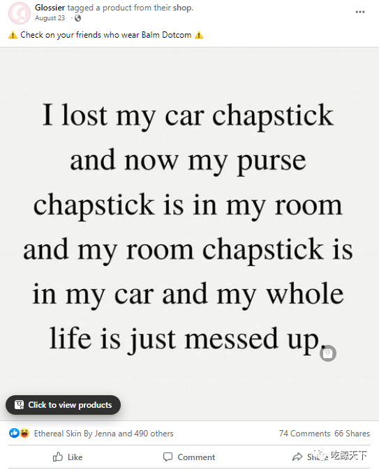 此外还有各种趣味性帖子,比如用户分享妈妈热爱产品的短信,不能失去唇彩的心情,或者调侃艾美奖女星着装等等,这些帖子真实又可爱,让用户和 Glossier 双方都觉得很有趣。