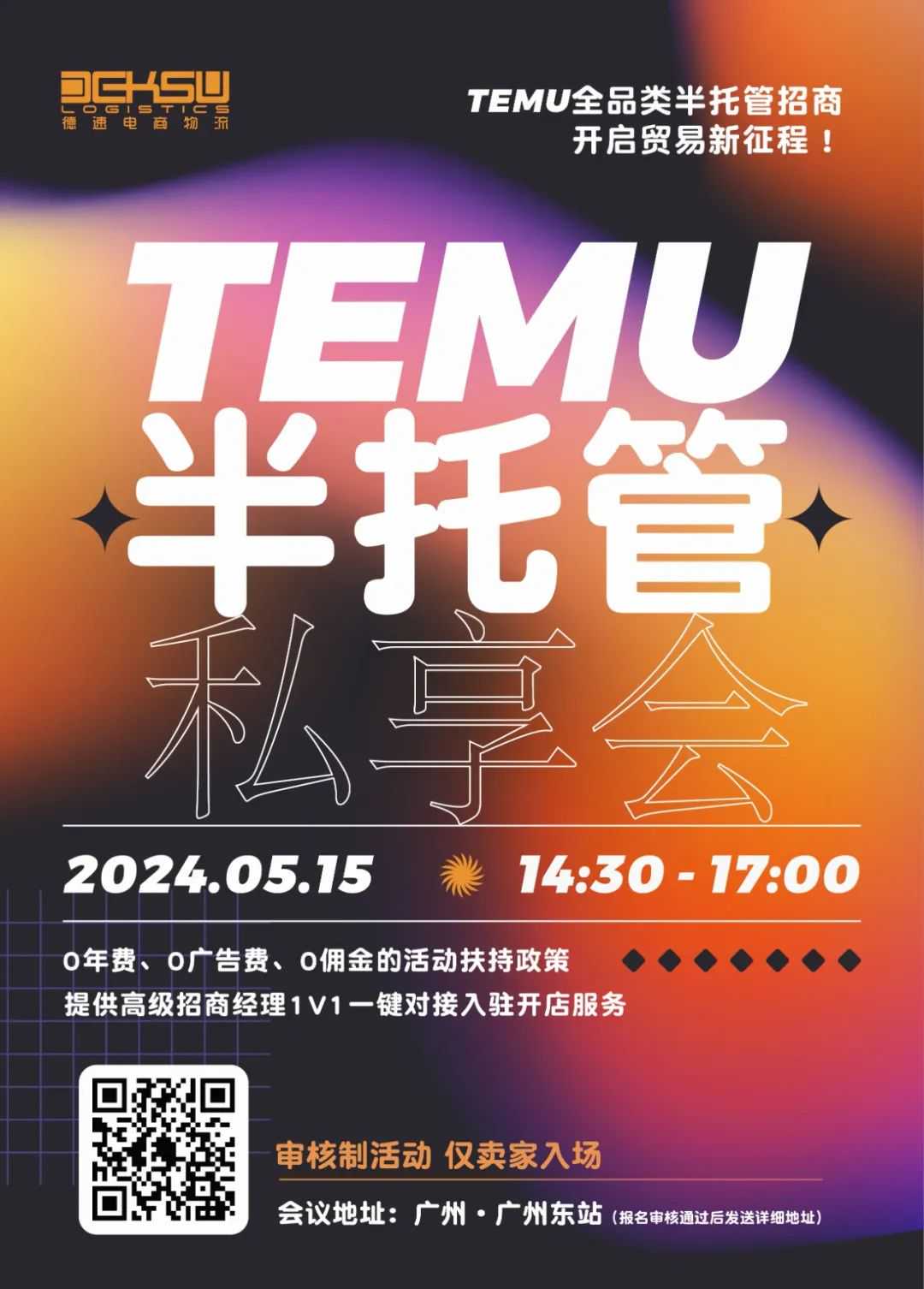 想要深入了解TEMU全品类招商政策吗?那就别错过我们精品私享会的邀约!5月15日!相约广州!与招商经理面对面,一次解决你的疑点!