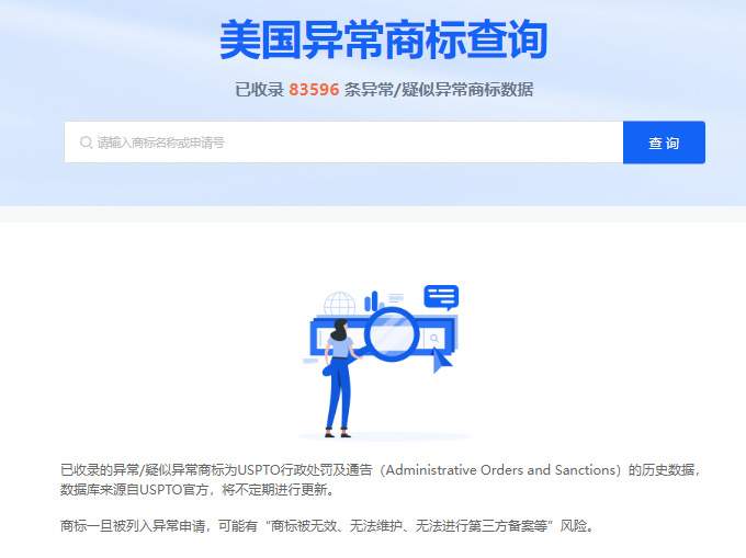 麦德通为降低美国商标风险,发布一款美国异常商标查询,各位卖家在进行购买现标前或想了解更多美标相关信息可进行商标查询。