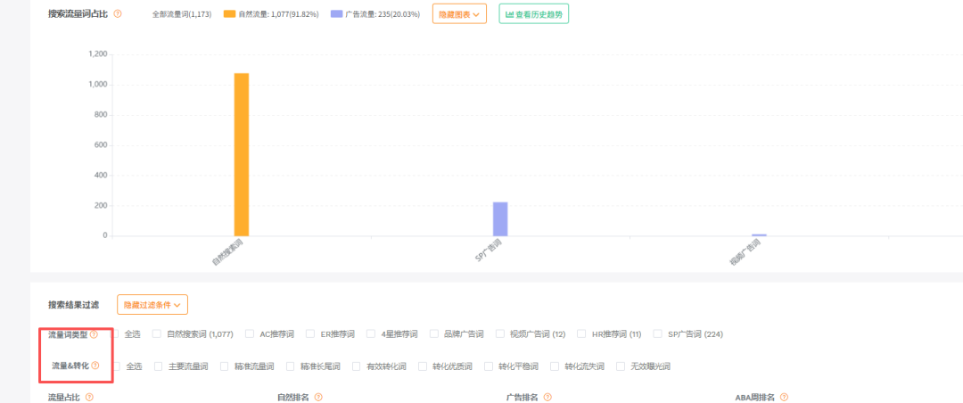 勾选“自然搜索流量词” → 筛出对手依赖的 listing 优化词