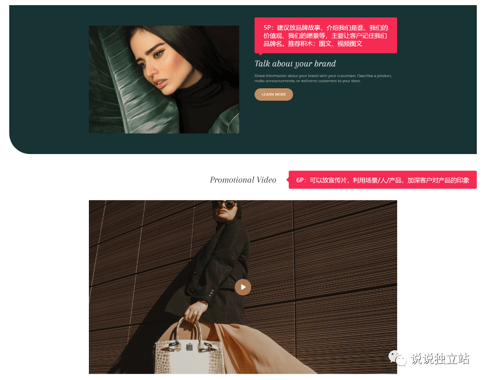6P:可以放宣传片,利用场景、人、产品,加深客户对产品的印象。5P和6P参考效果如图↓