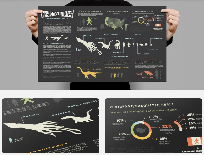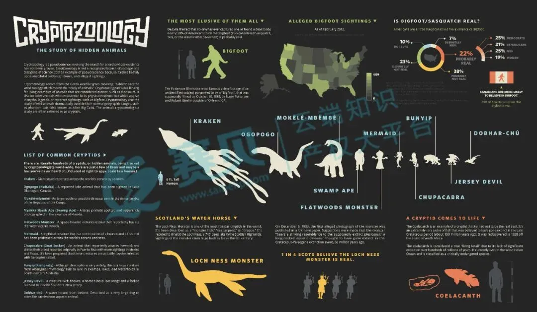 这次维权的是《Cryptozoology Infographic》(神秘动物学信息图表),是聚焦 “神秘动物学” 的一张图,里面有大脚怪、尼斯湖水怪、卓柏卡布拉、挪威海怪这些全球都有名的 “神秘生物”,还加了些数据统计,比如“截至 2012 年 2 月的大脚怪目击传闻”“4% 苏格兰人相信尼斯湖水怪存在”,既有知识点又好看,所以也成了很多卖家喜欢用的素材。赛贝提醒即使卖家对作品内容进行轻微修改(如调整颜色、裁剪局部、添加少量元素),若修改后内容与原作品仍构成 “实质性相似”,仍可能被认定为侵权!