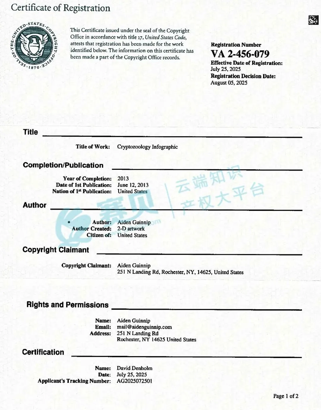 赛贝通过自主研发的 TRO 案件查询系统查到,Keith律所已经代理Aiden Guinnip,在 2025年11月19日于伊利诺伊州发起了这起诉讼,案件编号是25-cv-14147,围绕《Cryptozoology Infographic》(神秘动物学信息图表)的版权侵权。