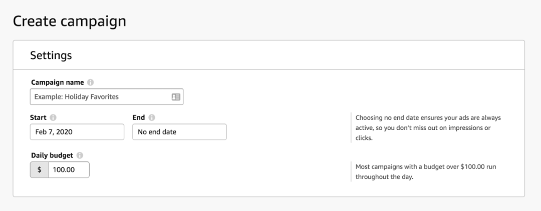 刚开始时,将每日预算和默认出价设置为比亚马逊建议的价格高150-200%;