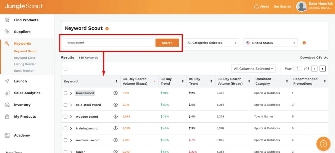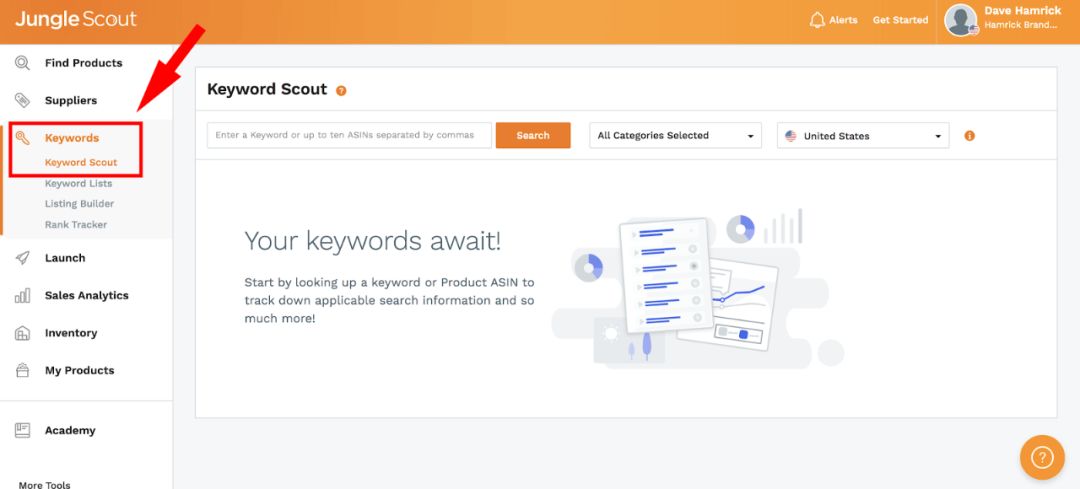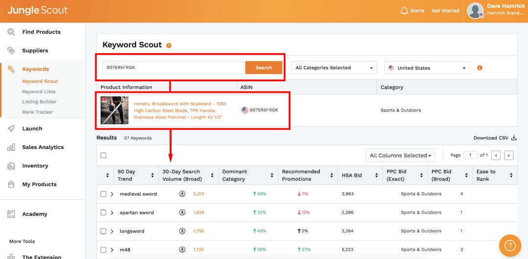 使用Jungle Scout的Keyword Scout进行详细的关键词研究,同时关注相关的