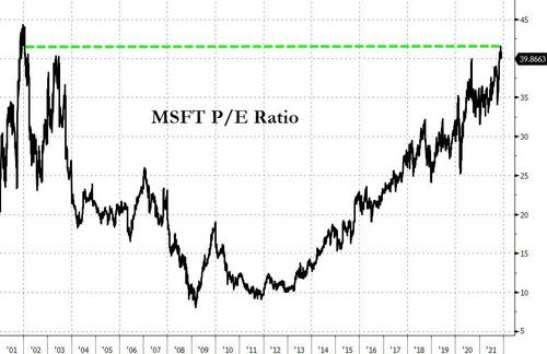 Satya Nadella 减持之际,正好也是微软的市盈率(PE)重返历史高位之时。
