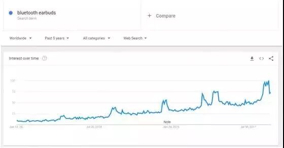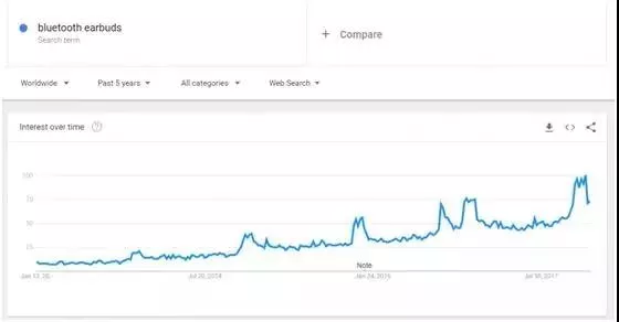 众所周知,全球主要一线城市的空气污染情况已经达到了历史最高水平,伦敦、洛杉矶、纽约都曾经出现过空气污染严重的警报。越来越多的消费者开始注重家、办公室、车里等私人空间的空气质量。 谷歌趋势展示了人们对空气净化器的兴趣。而且随着人们需求的增加,空气净化器的成本也有所下降。 考虑到宠物行业的规模,这是一个极具增长潜力的利基市场。中国在美留学生之间流传着一个不言而喻的与房东太太交流的规则:夸赞她的狗狗和孩子一样聪明。随着养狗人数的增多,宠物产品的需求也在增长。 比如: 狗狗饮水瓶,可以说是“狗奴”的福音,水瓶外装有一个托盘,人们只需打开水瓶,水流进托盘,狗狗就可以饮用了。 从谷歌趋势来看,狗狗饮水器的需求也在缓慢上升 发光狗链,由反光材料制成或者内置LED灯。将发光狗链戴在狗狗身上,方便宠物主人在黑暗中辨别狗狗的方位。 蓝牙耳机、智能手表、手环、音响等融合现代科技的智能生活用品在谷歌趋势中,搜索量处于稳步增长状态。这些产品给人们的生活带来了很大的便利。 根据谷歌趋势,蓝牙耳机的需求更是保持稳定明显的增长 厨房不再是女生的主场,并且随着科技不断创新,越来越多的产品帮助我们分担了很多不必要的重复劳动,智能厨房用品应运而生,看起来炫酷,用起来很爽,让厨房不知不觉b格满满。
