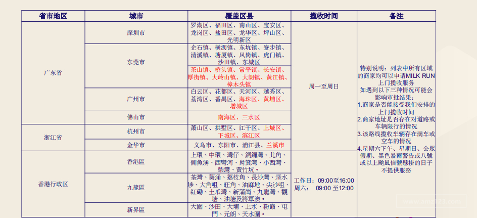 • 义乌商家,可联系李志辉,联系电话:13575948129 香港商家, 可联系Tramy Liu,联系电话:6111 9678 Ø 周六周日都可以提供Milkrun服务;香港地区除外(周六下午-周 日无揽收服务)