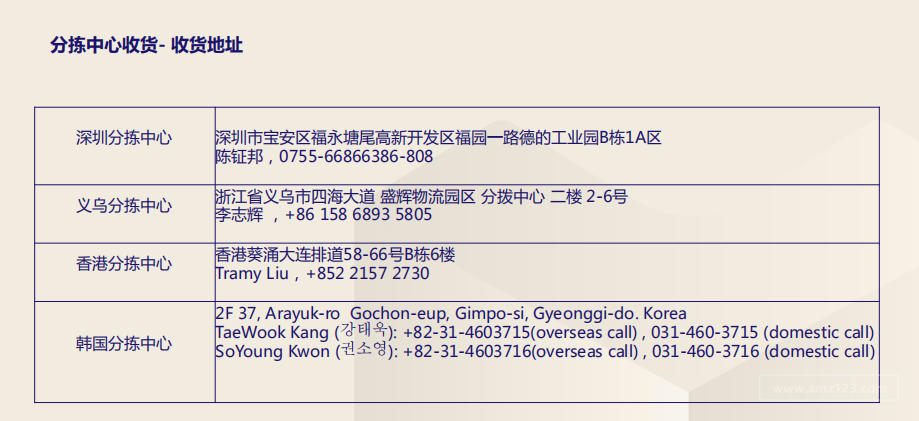 (四)Q:大促期间货量多,是否可以增加车辆再次揽收? 答:提货前3个小时前告诉司机大概货量;如果货量大幅增加,需要新增车辆,商家可以当天20:00前告知分拣中心安排. 联系方式: 宝安商家,可联系谭深,联系电话:17670757618 义乌商家,可联系李志辉,联系电话:13575948129 香港商家:可联系Tramy Liu,联系电话:6111 9678(根据当天情况提前与司机预约)