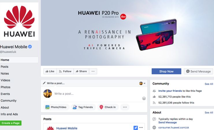 目前,华为在INS上的粉丝数已经达到了100万人,而在Facebook上,它的粉丝更是超过了5000万。
