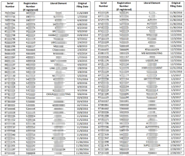 而此次补充文件也大量引用并入了2021年最终制裁令的调查结果和事实认定,补充文件的附件A共列出3361件目前处于活跃状态的商标,即文章开头提及的涉事商标名单。