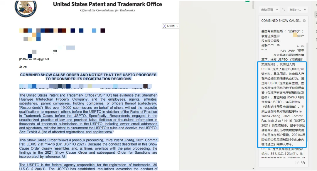 现有证据表明,USPTO的注册决定是基于虚假陈述和假设作出的。涉事公司如需作出回应,须于2026年2月26日前提交,方能被考虑。